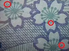 こうした道具を使うことでどのくらい見え方が違うか、少しご紹介しましょう。下の画像は、お札の模様をマイクロスコープと肉眼で見比べたものです。